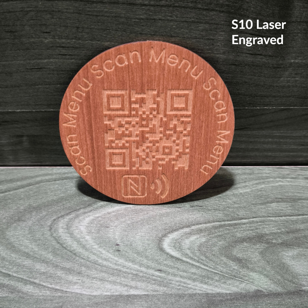 Elegantne ümmargune puidust QR / NFC silt | Lasergraveering või värviline trükk
