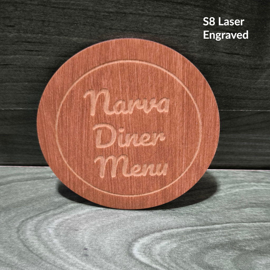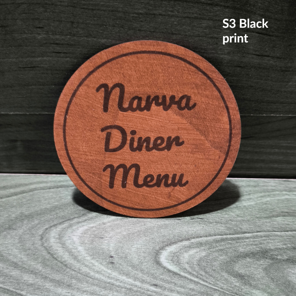 Mõlemale küljele saab teha graveeringu või premium-kuumtrüki, näiteks ühel pool menüü ja teisel pool arvustused, WiFi või sotsiaalmeedia.