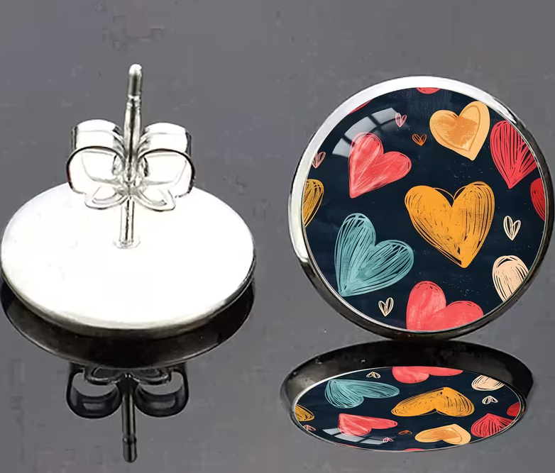 Südame mustriga roostevabast terasest naastkõrvarõngad