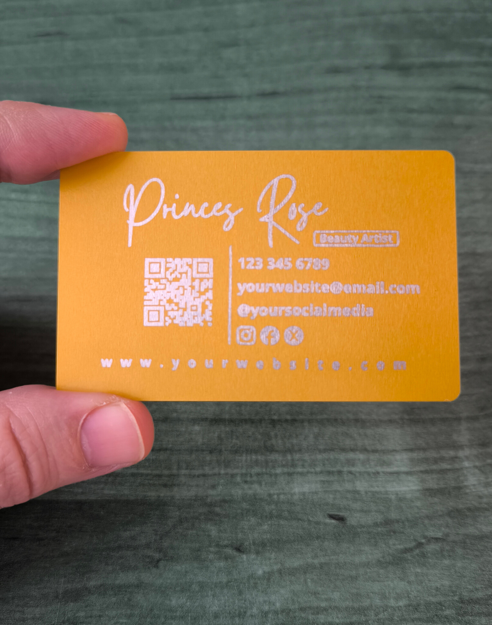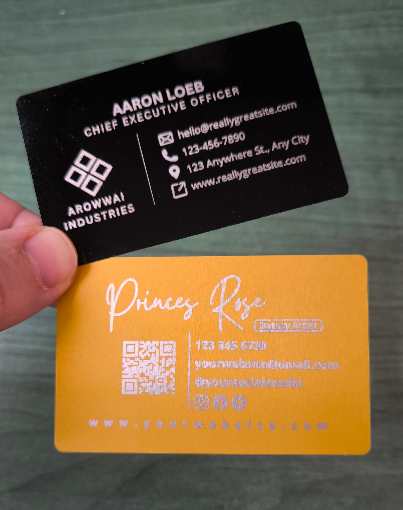 Whether you’re promoting your personal brand or representing your company, your metal business card should feel as strong and premium as your business. Crafted from high-quality metal, these cards offer exceptional durability, refined elegance, and a striking modern look that traditional paper cards can’t compete with.