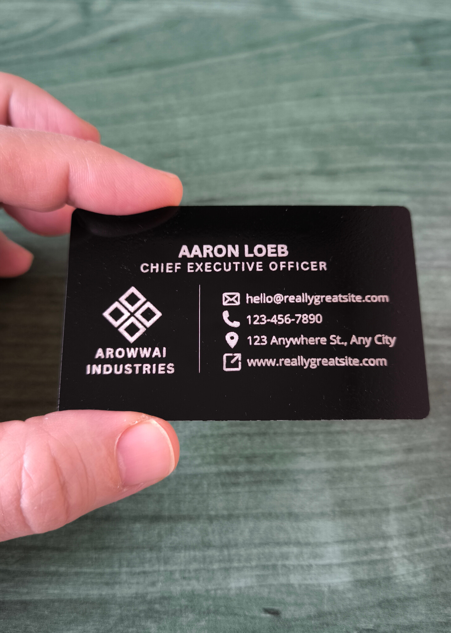 Our metal business cards are available in 4 unique styles, including sleek black and luxurious gold finishes. Each card is precisely laser-cut and laser-engraved, so every detail—from your logo and contact information to custom QR codes—is presented with sharp, professional clarity.