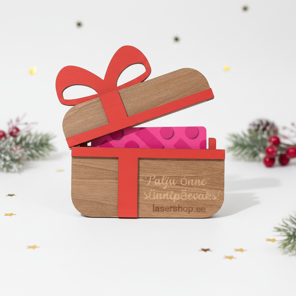 You can personalize the wooden gift card holder with custom text — names, dates, short messages or greetings — and choose the engraving colour in classic black or luxurious gold. It is a versatile choice for birthdays, congratulations, thank‑you gifts, holidays and any special celebration where you want your gift to stand out.