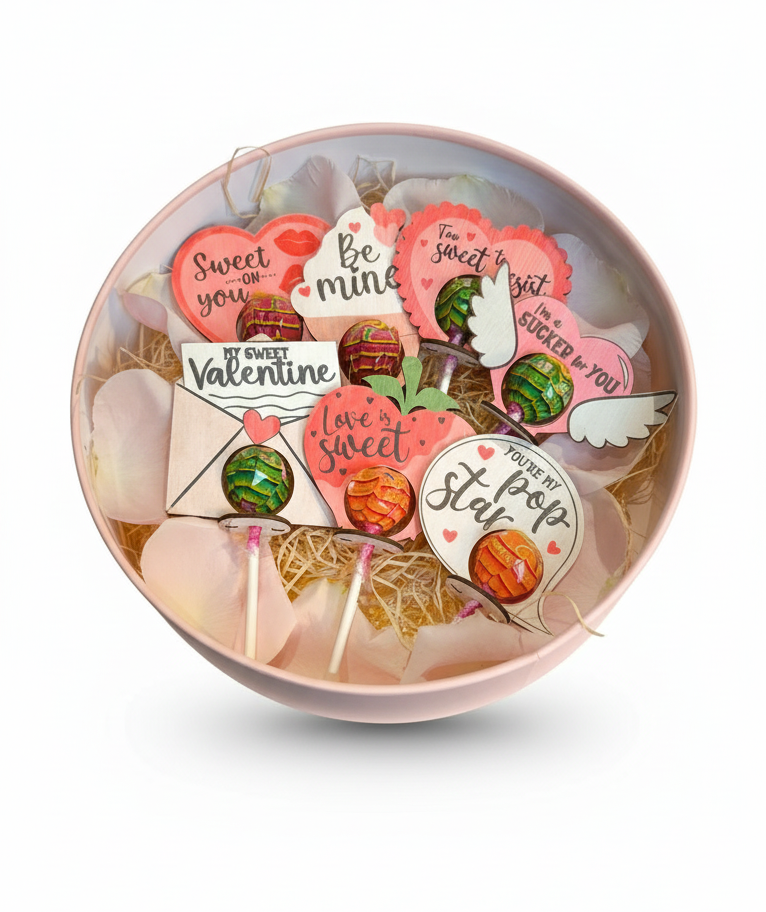 Celebrate love with colorful wooden Valentine’s Day lollipop holders. Available in 7 romantic designs with premium print on wood and optional gift box — perfect Valentine’s Day gifts for him, her, couples, and kids.