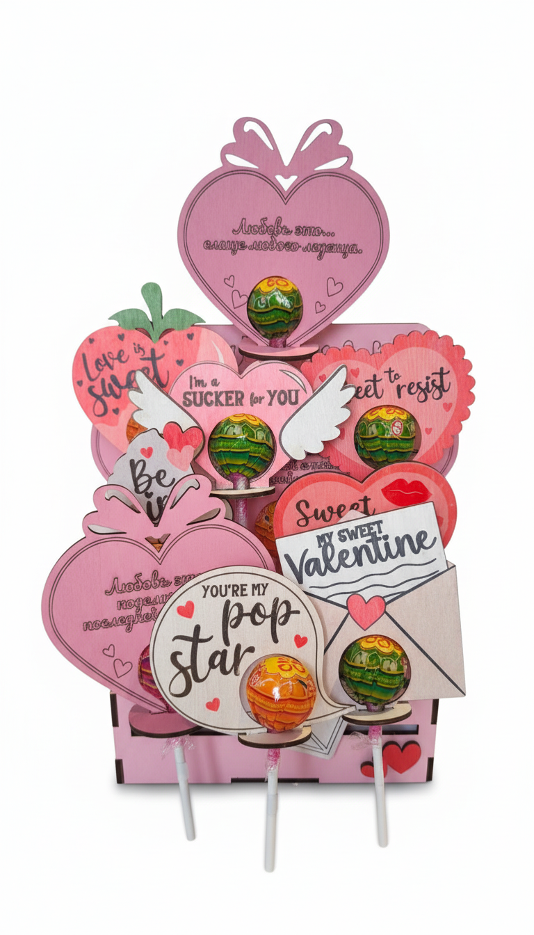 Colorful Wooden Valentine’s Day Lollipop Candy Holders – Heart, Love & Cake Designs | Gift Box Option